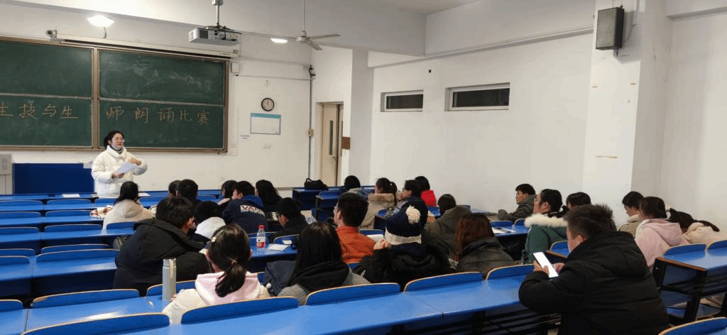 12月8日中午,2020级生物技术与生科师范班朗诵比赛如期在逸夫楼A201教室举行,本次比赛以团体赛的形式展开,由辅导员黄洁、“陶行知朗诵队”领诵人李起航、邓美妮担任此次活动的评委。
