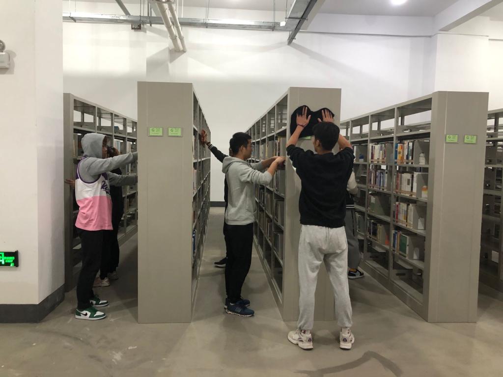 滨湖校区图书馆劳动实践:新书包裹拆封后分类整理,按照图书编码放置书架,打扫自习室的卫生及部分区域的卫生消毒等。