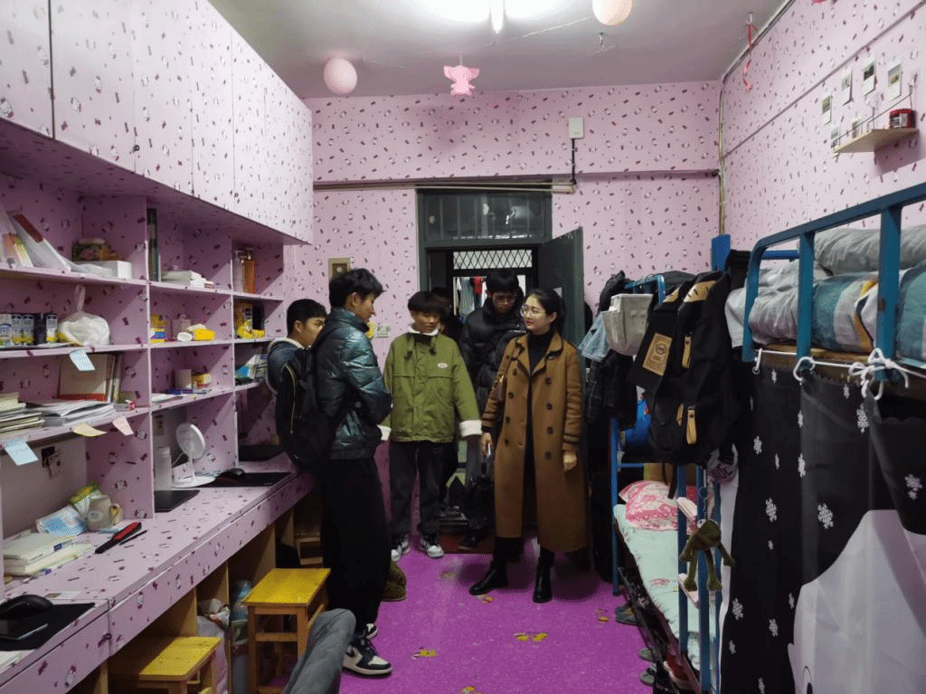 班会结束后,黄洁带领各班级负责人依次检查各寝室卫生及用电安全情况。通过排查,未发现违规用电情况,寝室卫生状况良好。对于一些装饰较好,特别干净整洁的寝室,黄洁给予了表扬。黄洁在每间寝室和同学们进行愉快的交谈并且贴心的询问同学们入学以来对大学生活的适应情况和学习情况。她反复提醒同学们要增强寝室用电安全意识,妥善保管好自己的贵重物品,营造良好的学习生活环境。
