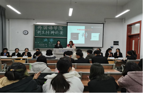 本网讯 古有卧龙诸葛舌战群儒,今有群英荟萃慷慨陈词。为丰富外国语学院学生的课余生活,活跃校园气氛,引领当代大学生思潮,提升学生的思辨能力,外国语学院积极筹划举办“新生杯”主题辩论赛。本届辩论赛参考第四届华语辩论锦标赛赛制,分为初赛、复赛、半决赛、决赛四个阶段,历时三周,并特邀学院辩论队优秀队员担任评委,比赛赢得同学们的广泛关注。