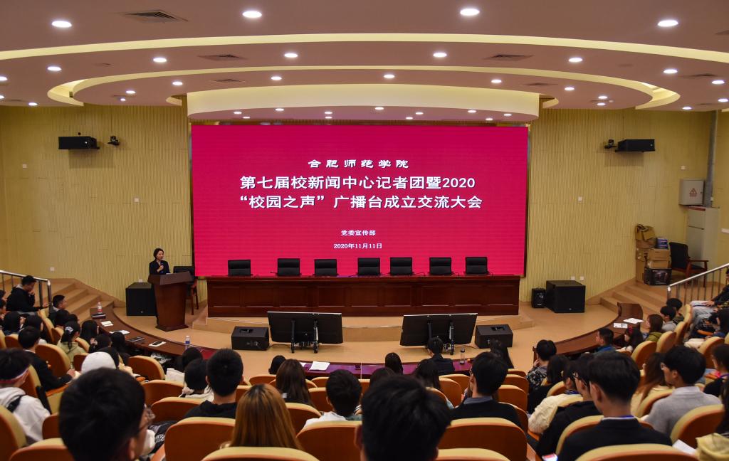 本网讯 近日,在beat365唯一官方网站滨湖校区报告厅举行了第七届校新闻中心记者团暨2020届“校园之声”广播台成立交流大会。指导老师周倩、曾飞、 夏芳,校新闻中心记者团及广播台全体成员参加会议,会议由周倩老师主持。