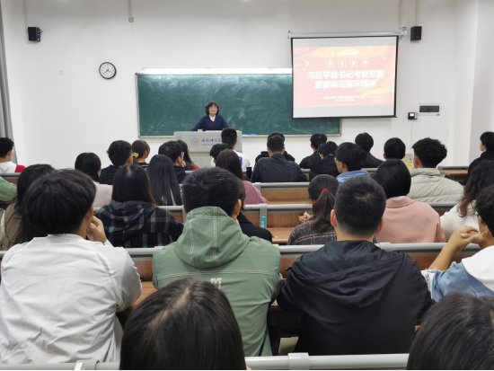 本网讯 为进一步学习宣讲习近平总书记考察安徽重要讲话指示精神,落实大学习、大宣讲、大贯彻要求。10月28日下午,物理与材料工程学院党总支书记唐洁用专题党课的形式为学生干部、入党积极分子宣讲习近平总书记考察安徽重要讲话指示精神。