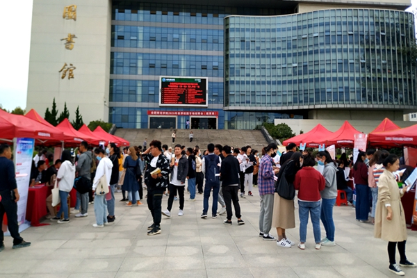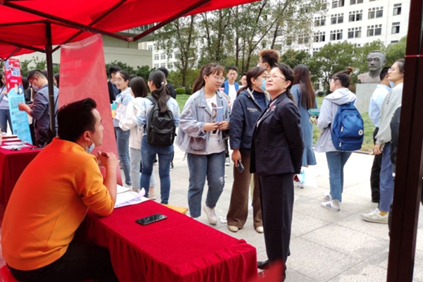 本网讯 为落实“稳就业”“保就业”决策部署,助力2021届毕业生早就业、就好业,10月14日下午,学院组织17家优质用人单位在锦绣校区行知广场举办2020年秋季教育类专场招聘会,这也是今年秋季以来学院举办的首场线下专场招聘会。招聘会共吸引了各学院500余名毕业生参加。