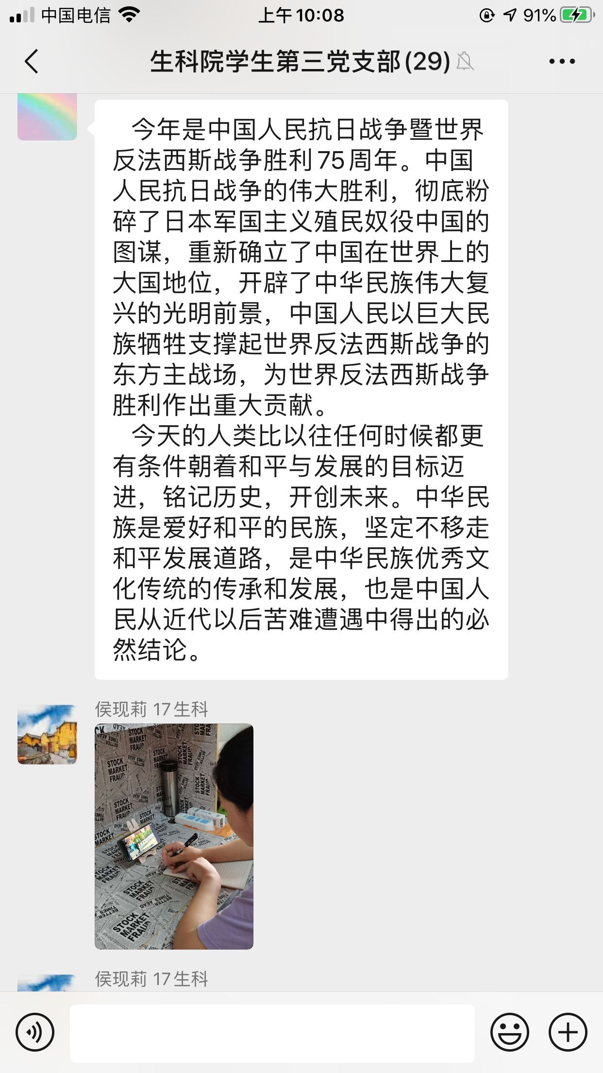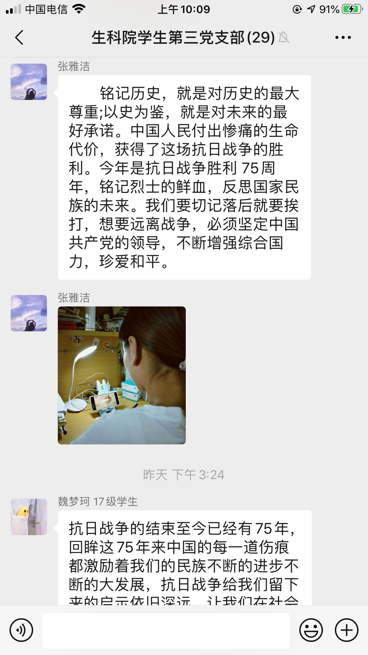 生科院学生第三党支部组织观看纪念中国人民抗日战争暨世界反法西斯战争胜利75周年纪念活动