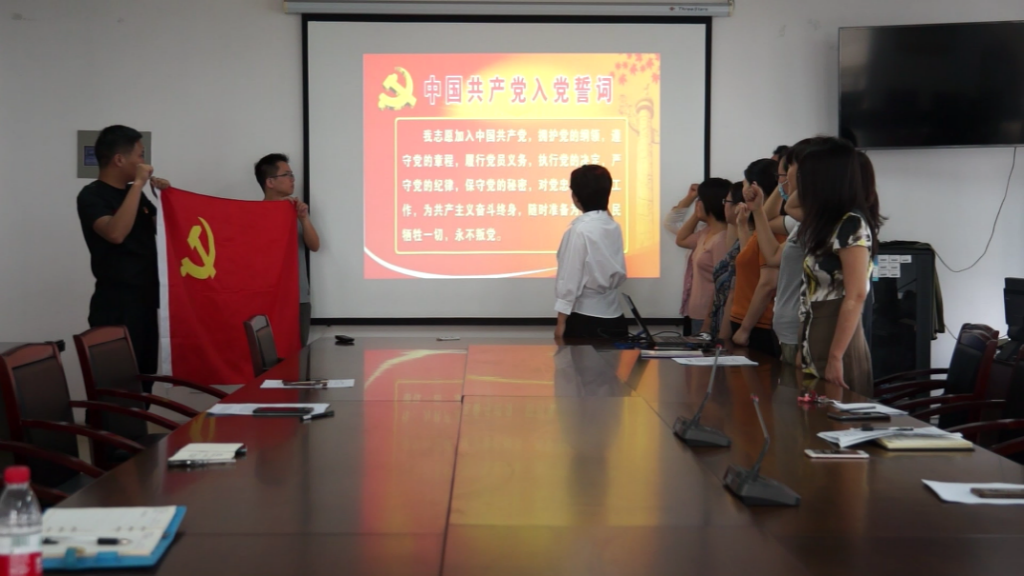 鲜活的战疫事迹点燃了大家的热情,支部随即进行了“重温入党誓词”。在支部组织委员齐璐璐的领誓下,党员们面对鲜红的党旗,高举右手,握紧拳头,再次庄严宣誓“我志愿加入中国共产党……永不叛党”。铿锵誓言,,强烈震撼着在场的每一位党员,使每一位党员再一次接受了深刻的党性教育和灵魂洗礼。与会党员同志纷纷表示,通过重温入党誓词,再一次体会到了作为一名共产党员的责任感和使命感,在今后的工作中一定以进取的心态和昂扬的斗志践行入党誓词,以踏实的工作态度为学校的发展做出自己应有的贡献。