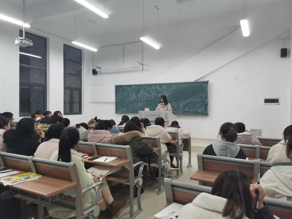 本网讯 针对近期我校开展的2019年学生体质健康测试,经济与管理学院在滨湖校区于12月5日晚召开了体测动员主题班会。本次会议由财务管理一班素质拓展委员孟雪主持,2019级学生参加了本次会议。