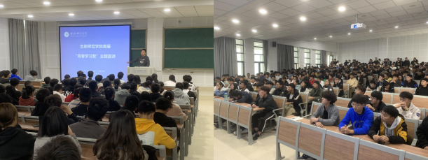 本网讯 11月13日下午,电子信息与电气工程学院组织2019级全体学生在滨湖校区博学楼A108教室开展首届大学生“青春学习营”主题宣讲活动。首届青春学习营第七组学员、2017级电子信息工程专业缪传付同学为全体新生做宣讲。