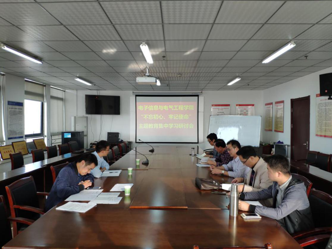 本网讯 10月9日,电子信息与电气工程学院在院会议室举行“不忘初心、牢记使命”主题教育第二次集中学习研讨。校组织部副部长许锃,组织部、宣传部工作人员参加研讨交流,院领导班子成员、总支委员参会。会议由院党总支书记李如彬主持。