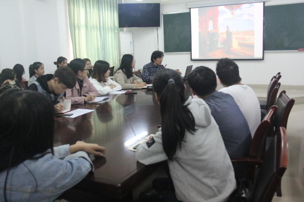 首场“画作赏析”于10月17日下午在学院会议室举行,以“传承红色基因,牢记初心使命”为主题,以经典历史画作《开国大典》创作欣赏开场,由艺术传媒学院潘望森院长主讲。