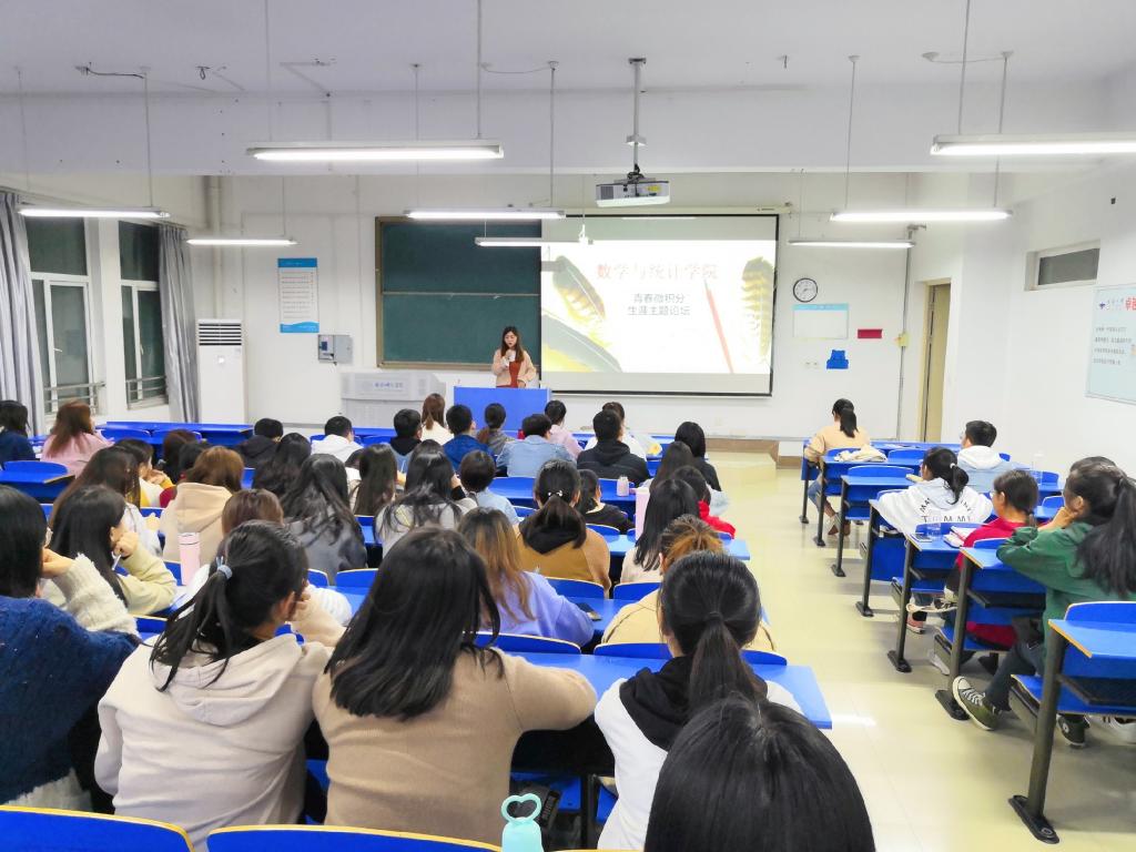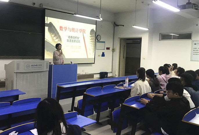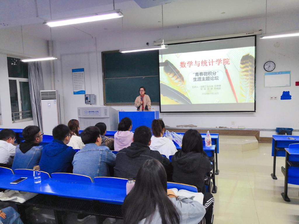 本网讯 10月16日晚,数学与统计学院在逸夫楼107举办以考研经验交流为主题的“青春微积分”生涯主题论坛。我校2017届数学与应用数学专业毕业生、合肥工业大学在读研究生伍婷婷、安徽大学在读研究生鲁成甜应邀参加了此次活动,为即将考研的大三学生传授考研经验,分享考研成功之道,进一步激发大三学生的考研热情,明确发展方向。论坛由2017级辅导员周倩老师主持。2017级数学与应用数学、2019级数学与应用数学专升本班同学100余人自主报名参加了此次活动。程小东、周倩等党员同学积极参与活动的组织与服务,用自己的实际行动践行着“不忘初心、牢记使命”。