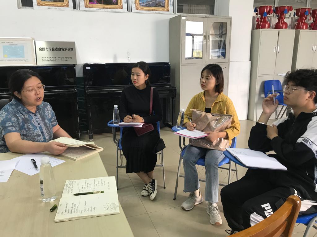 为了保证本次实习工作的顺利进行,9月27日上午,我院负责实习工作的盛夏老师率2017级三位实习生正式前往合肥市第一中学进行校外实习。双方在合肥市第一中学音乐教室举行了实习生与校外指导老师见面会。合肥市第一中学音乐老师韦永珍老师对同学们的实习表示了欢迎,并详细介绍了一中2019年上半年的工作任务和实习相关内容与要求。实习生在简洁的自我介绍后,双方就本次实习的意义和任务进行了交流探讨,音乐学院将继续深化与合肥市第一中学的实习和交流工作,为音乐学教师教育专业人才的培养探讨出切实可行的途径。