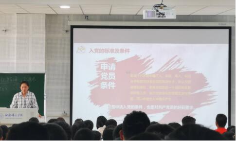 9月24日上午,学生党支部书记张静斐为2019级新生进行党的基本知识集中教育,分别从入党的条件和动机、入党流程、发展对象的培养考察、以及党章等方面一一开展。让新生能够尽快了解党的辉煌历程,端正入党动机,提高新生递交入党申请书的积极性。