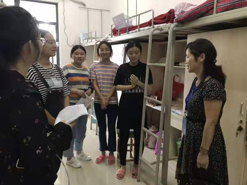 郭桃芬一行进入宿舍后,与新生、家长进行了亲切交流,提醒新生注意人身安全、财物安全,夜晚尽量不要外出,拒绝各种推销,以防上当受骗。鼓励新生尽快适应大学生活,合理制定大学四年的愿景计划,打好专业基础,积极参与社会实践,同学之间团结友爱。新生家长对学院领导老师的悉心关怀表示由衷的感谢,对学校各个报到环节的细心安排和热心周到的服务以及校园环境、住宿条件等非常满意,表示非常放心把孩子送到我校学习,同时家长希望学院能对孩子们严格要求,让他们在大学里能学有所成。