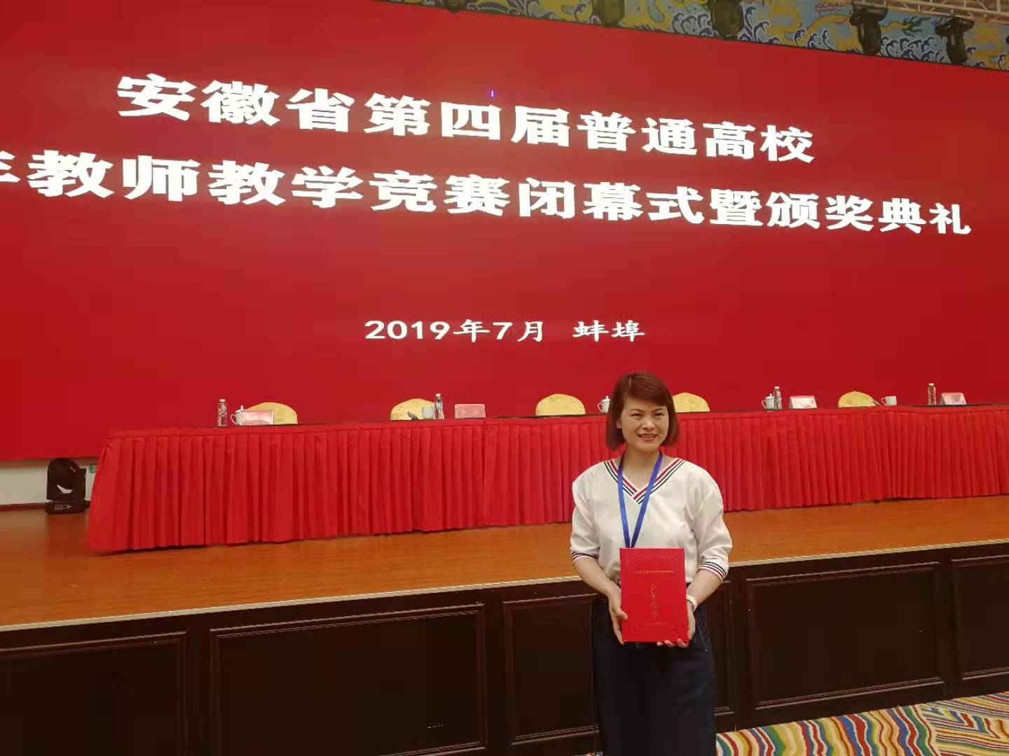 本网讯 今年暑期,由安徽省总工会、安徽省教育厅、安徽省教科文卫体工会主办,安徽财经大学承办的安徽省第四届普通高校青年教师教学竞赛决赛在蚌埠举行。我院刘英老师积极参赛,荣获思想政治课专项三等奖。