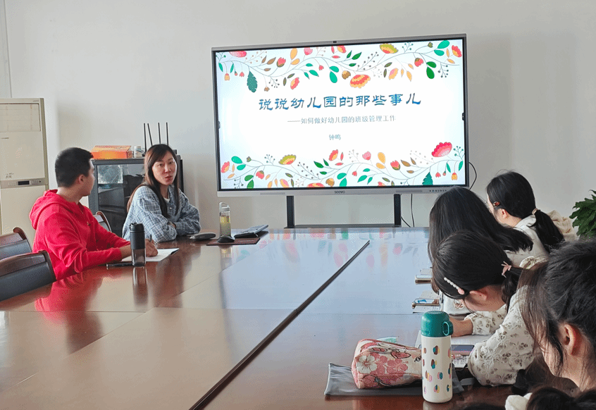 3月30日上午,青阳路幼儿园骨干教师钟鸣在锦绣校区行知楼710会议室开展“说说幼儿园的那些事”主题讲座。钟鸣指出,带班是幼儿园教师专业成长的起点,也是新手教师面临的挑战,她结合幼儿园班级管理实例,向同学们传授了解决问题的具体办法,分享了“基于幼儿特点、循序渐进、寓教于乐、因材施教、师生平等、一视同仁、基于需求分类沟通、锲而不舍、态度积极”的幼儿园班级管理经验。本次讲座加深了学生对幼儿班级管理的认识,大家纷纷表示希望能够成为懂幼儿、会组织、能管理的新时代幼儿园教师。