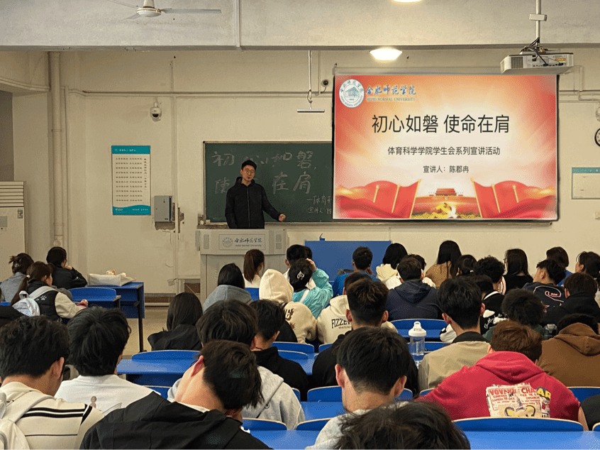 为深入学习贯彻习近平新时代中国特色社会主义思想和党的二十大精神,扎实推进党史学习教育常态化长效化,教育引导体院学子学史明理、学史增信、学史崇德、学史力行,坚定理想信念,赓续精神血脉,努力成长为堪当民族复兴重任的时代新人。体育科学学院团委组织“体院青年说”系列活动首场宣讲活动于4月10日中午在逸夫楼109教室举办,学院近百名在校生参加活动。宣讲活动由体育科学学院团委书记高光健主持。