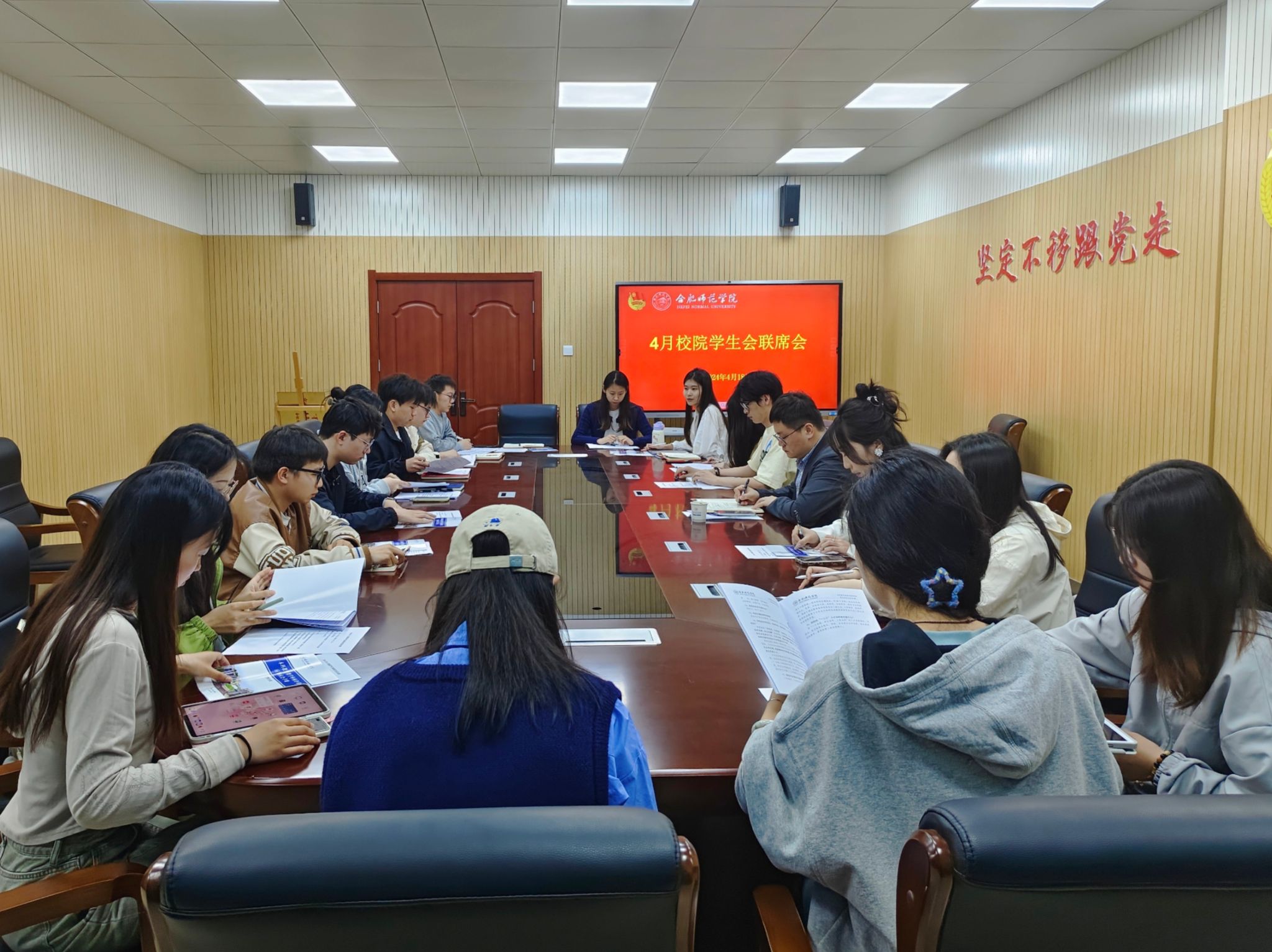 4月18日中午,院团委在共青之家召开2024年4月校院学生会联席会,院团委书记、学生工作部部长刁文彬,校院学生会主席团成员参加会议。