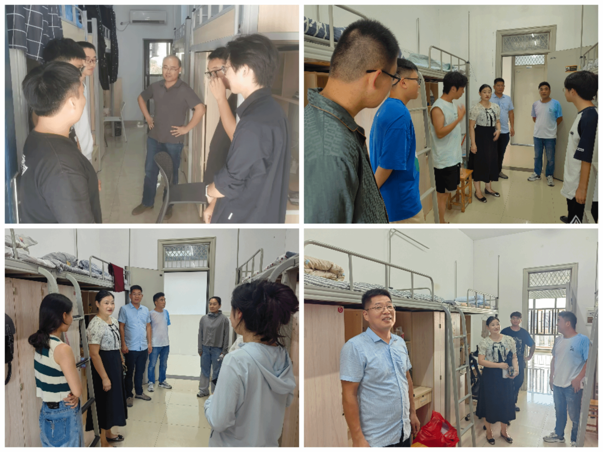 下午,学院领导与新生辅导员一起深入宿舍看望新生及家长,传达关爱。“家是哪里的?怎么过来的?”“中午在食堂吃得怎么样?”“空调效果好不好”“对宿舍满不满意”……轻松的话语迅速拉近了彼此的距离。同时,学院领导一行还仔细查看了宿舍各种设施是否完好,强调了安全用电、防火、防盗、防骗等注意事项,并叮嘱同学们尽快适应新的学习生活环境,完成角色转变,科学、合理地规划好大学期间的学业和生活,在新的征程上取得新成绩。