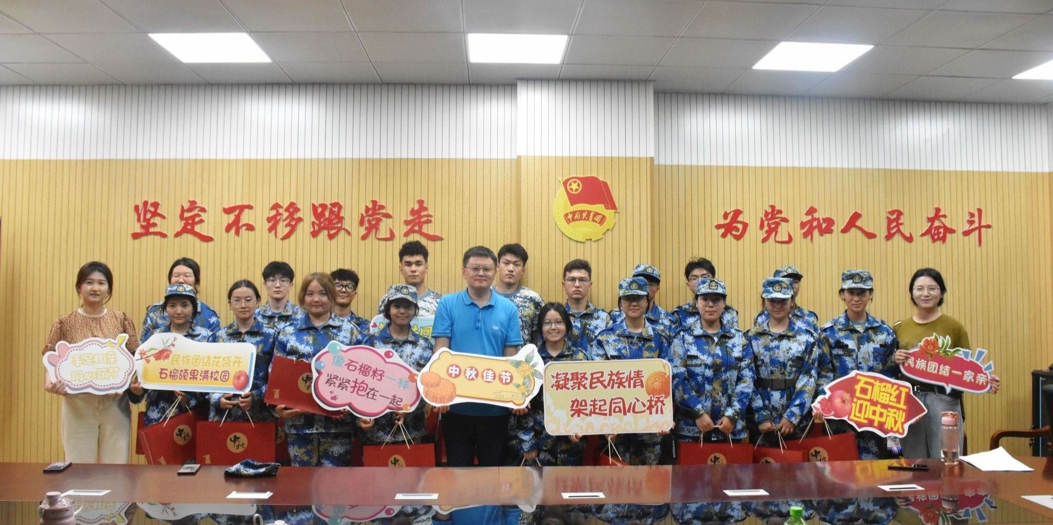民族团结花盛开,石榴硕果满校园。9月14日中午,“凝聚民族情 架起同心桥”中秋佳节座谈会在锦绣校区共青之家举行。学生工作部部长、团委书记刁文彬及各相关二级学院辅导员代表、锦绣校区新疆籍新生参加会议。