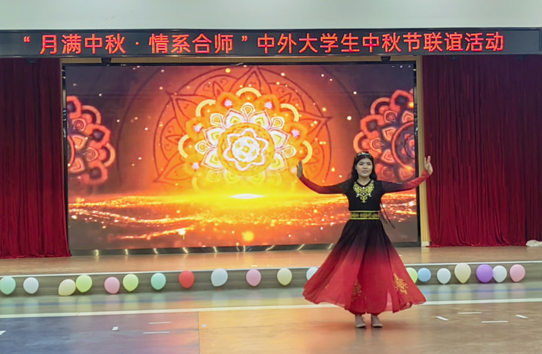 会后,在场的领导老师给学生送上了中秋礼品,并一起参加了中外大学生中秋联谊活动。阿依夏木古丽同学在联欢会上表演了民族舞《西域玫瑰》,展现了新疆舞蹈的独特魅力。(学生工作部)