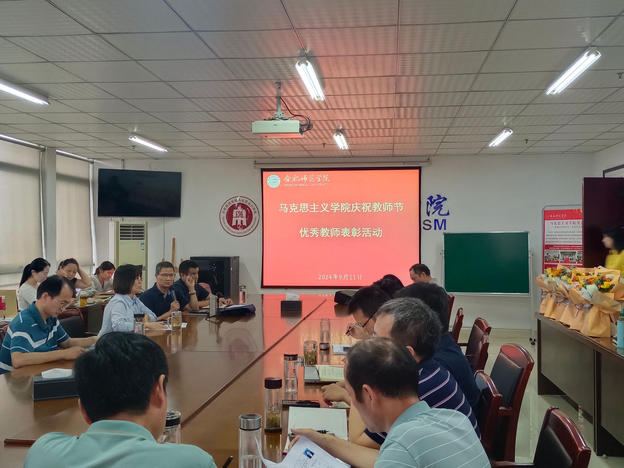 9月11日,马克思主义学院在行知楼1610会议室举行庆祝第40个教师节优秀教师表彰会。学院全体教师参加表彰活动,活动由院长何光辉主持。