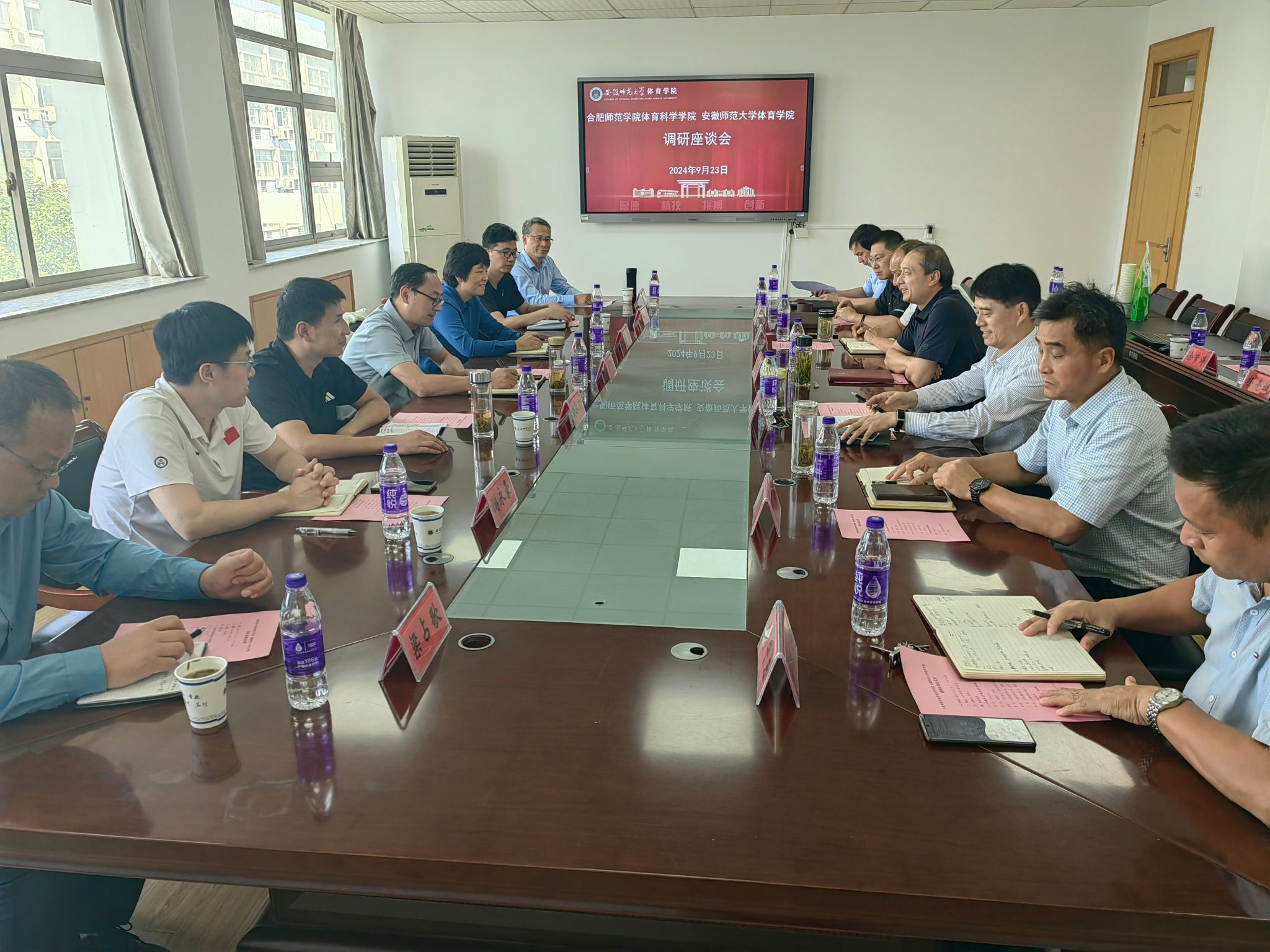 9月19日,体育科学学院赴淮北师范大学开展调研,淮北师范大学体育学院院长郑贺对调研组一行表示欢迎,并介绍了学院概况、专业设置、办学成果、学风建设、有组织科研、足球学院建设等情况,与会人员重点交流了作为全国首批获准招生的足球运动专业的成功经验以及作为省内第一家接受体育教育师范专业认证的有效做法。