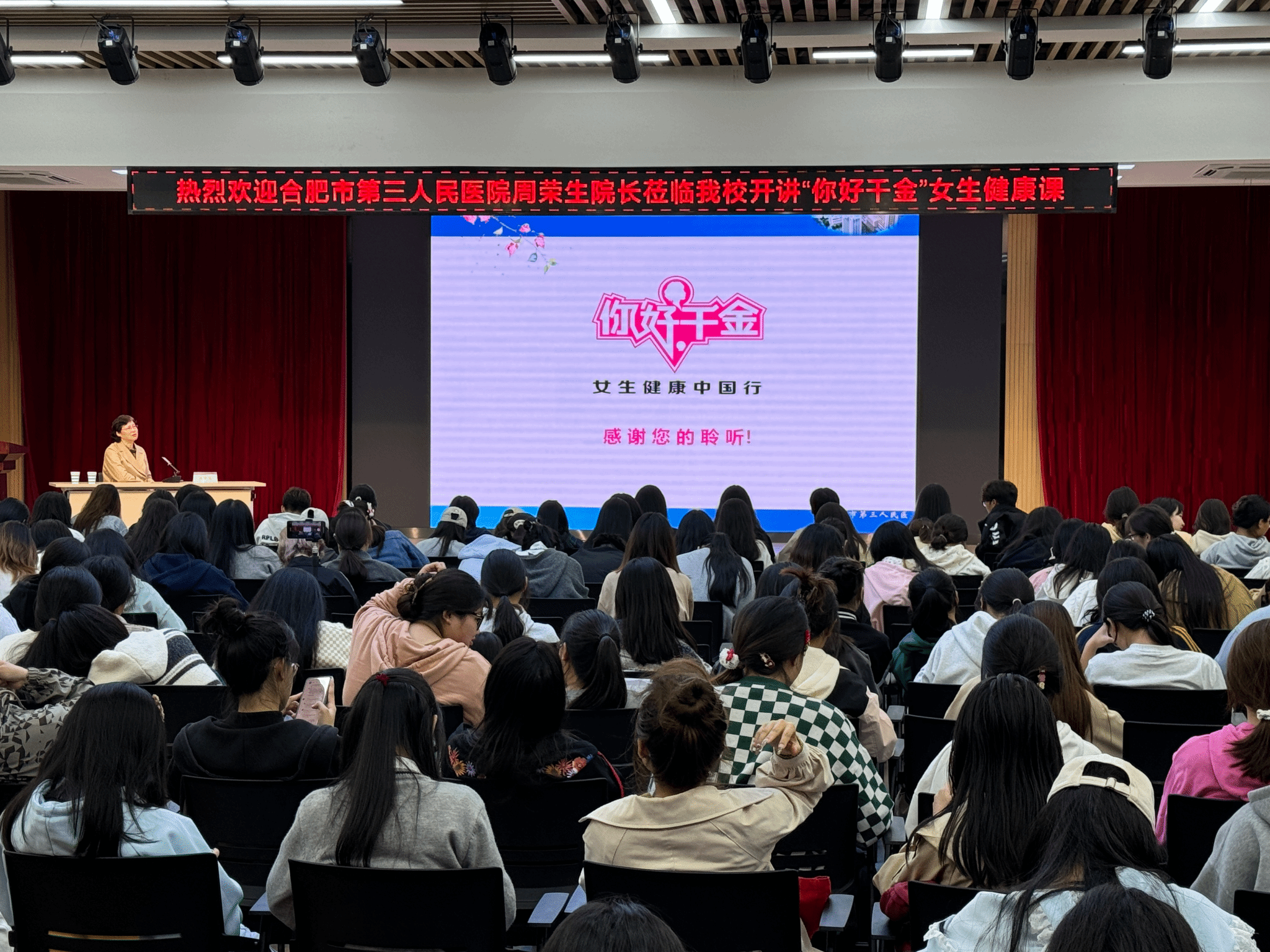 讲座主要围绕“大学生恋爱心理特点”“大学生疾病现状”等主题展开,为女大学生提供了实用的自我保健建议。
