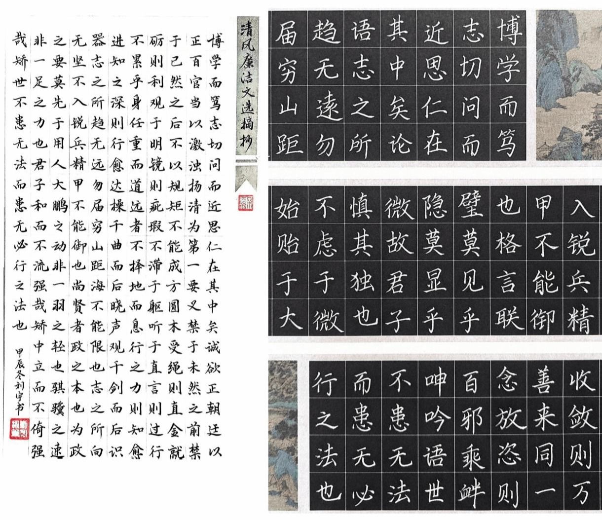 本次比赛围绕“清风廉语”廉洁文化主题,将中华优秀传统文化通过书法艺术的方式进行转化和创作,弘扬廉洁文化。同学们以笔为媒,以墨传情,用书法艺术展现了对廉洁文化的深刻理解和感悟。一撇一捺显真功,方格之间展豪情,参赛作品中有的笔法刚劲有力彰显廉洁正气,有的线条流畅优美蕴含廉洁清风。学院邀请了专业的书法老师担任评委,从字体结构、笔画规范、章法布局和艺术表现力等方面对参赛作品进行了认真评审,最终评选出了一、二、三等奖和优秀奖若干名。