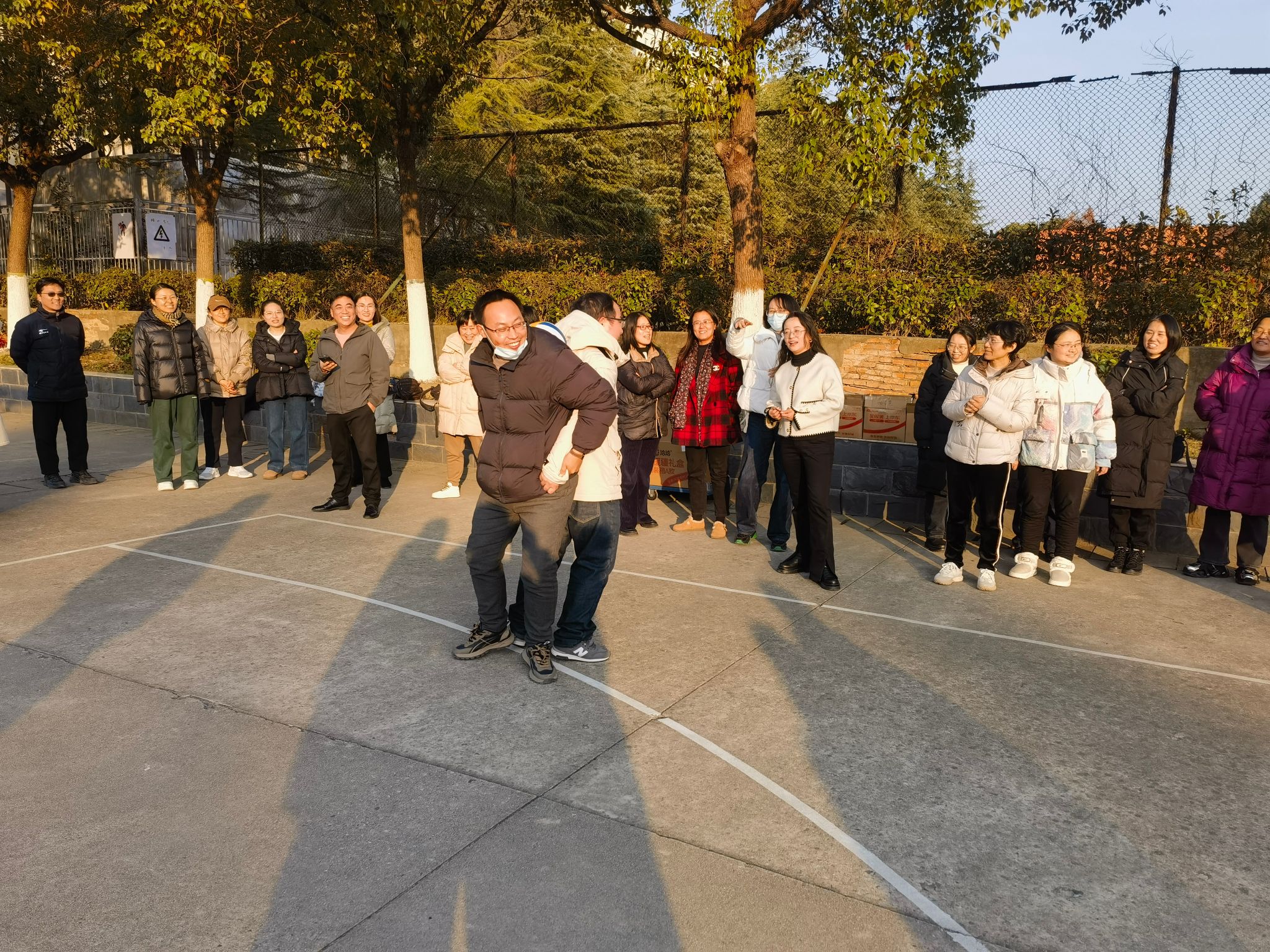 为增进教职工之间的沟通交流,丰富学院教职工文化活动,增强团队凝聚力,引导教职工积极参与体育运动,享受快乐生活,12月18日下午在锦绣校区篮球场,学院分工会举办了第二届“健康运动,快乐生活”螃蟹背西瓜趣味活动,学院党政班子和全体教职工积极参与,热闹非凡。
