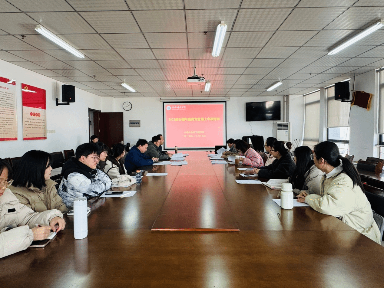 12月19日,生物与食品工程学院在行知楼1502会议室召开了beat365唯一官方网站-安徽大学联合培养生物与医药专业2022级硕士研究生中期考核和2023级硕士研究生开题工作。考核小组由学院研究生导师组成,院长朱桂兰担任组长并主持考核工作。