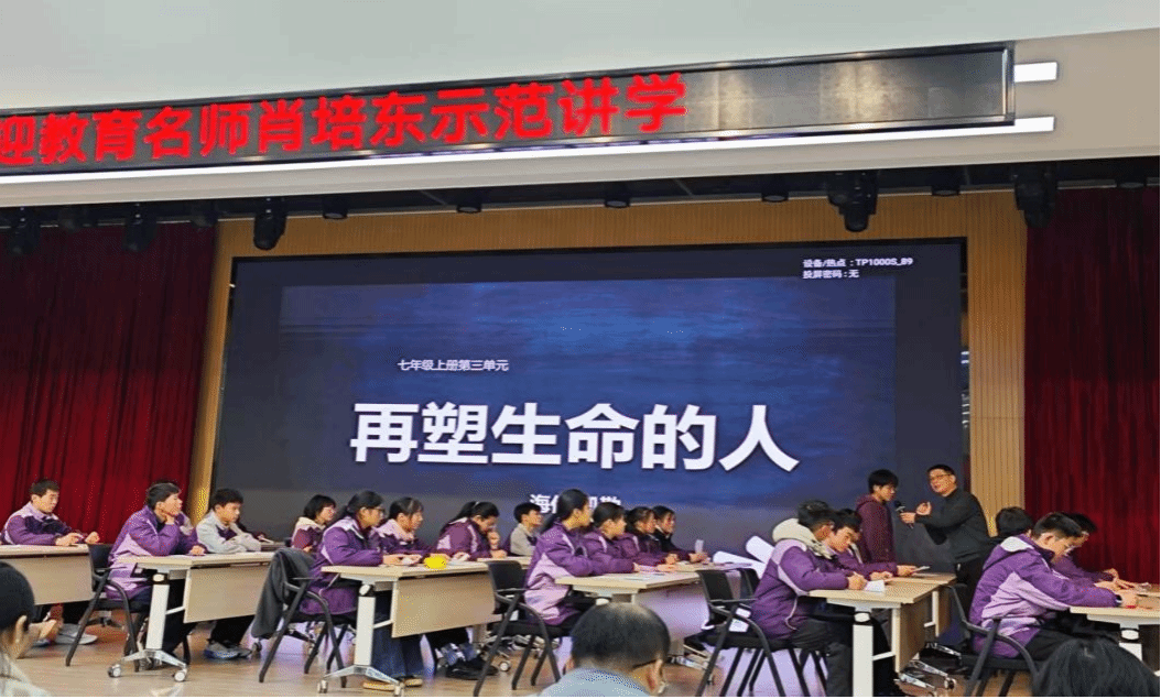 《再塑生命的人》选自美国残疾作家海伦·凯勒的《假如给我三天光明》。肖培东则抓住其自读课文的属性,关注标题、开头、结尾、文中的细节和表达感情的抒情议论句,把握莎莉文老师高超的教育艺术和“再塑”“我”生命的过程,从教授单篇的授人以鱼到教会学生阅读一类文本,授人以渔。精彩的授课赢得观众阵阵掌声。