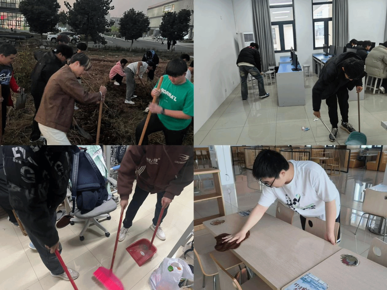 此次实践活动延续上学期的劳动内容,各班级分工明确,同学们积极参与,对教室、宿舍、实验室等进行了全方位的打扫。在正式开展前,各班级组织主题班会进行动员,充分调动同学们参与劳动的积极性,要求同学们严格按照标准,完成劳动实践任务。在实验室卫生打扫时,同学们悉心清洁机房的卫生,以认真专注的动作呵护电脑设备。在食堂清洁时,同学们认真跟随食堂阿姨收拾餐桌与残羹冷炙,维护食堂的干净整洁。在宿舍内务整理中,同学们以创建文明宿舍为目标,认真打扫宿舍。此外,同学们对劳动教育基地进行翻耕打理,感受田间劳作的乐趣。经过此次活动,教室、实验室、宿舍卫生整洁程度整体提高,学生劳动热情高涨,展现出了良好劳动精神风貌。
