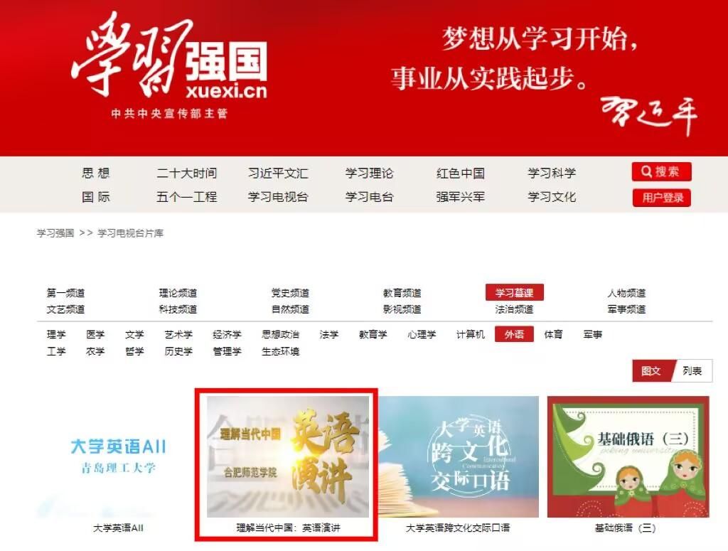 近日,外国语学院演讲课程团队强云、谈谷雨、张婕、吴珊珊四位教师倾力打造的课程——《理解当代中国:英语演讲》慕课,已正式在学习强国平台亮相。该课程面向全国高校开放,旨在深化学生对当代中国的理解和用英语表达中国故事的能力。