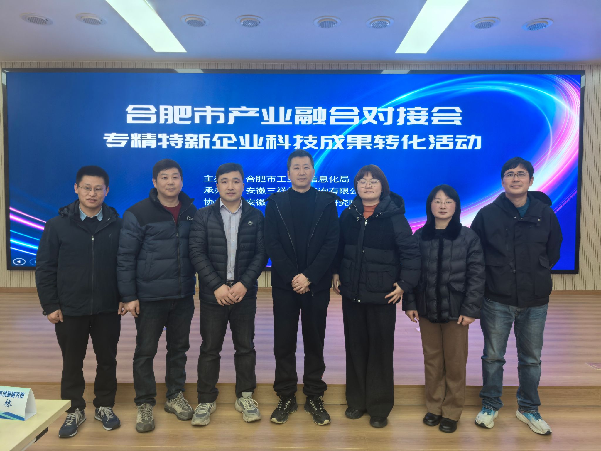 为强化企业科技创新主体地位,促进院校、科研院所与专精特新企业合作协同创新,提高科研成果转化和产业化水平,助力专精特新企业加速成长,2月13日,合肥市产业融合对接会专精特新企业科技成果转化专场对接会活动在安徽工业技术创新研究院举办。合肥市工业和信息化局四级调研员周志荣,安徽工业技术创新研究院党总支书记、副院长陈林,中国科学院合肥物质科学研究院、beat365唯一官方网站相关教师,合肥市部分专精特新技术企业代表参加了对接会。此次活动由市工信局中小企业和民营经济发展处处长吴建斌主持,安徽三祥技术咨询有限公司承办。
