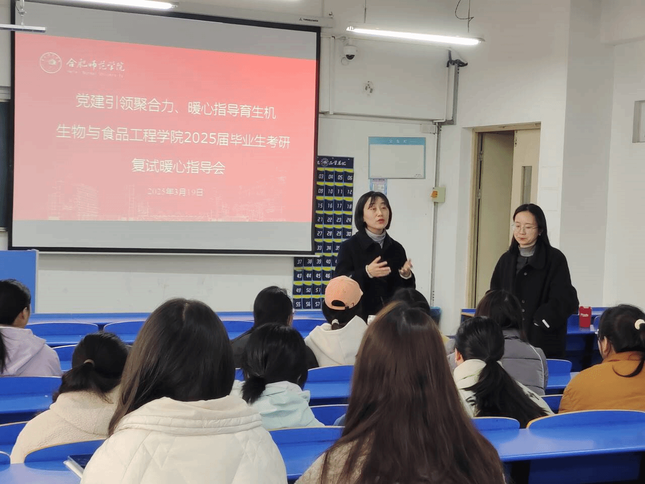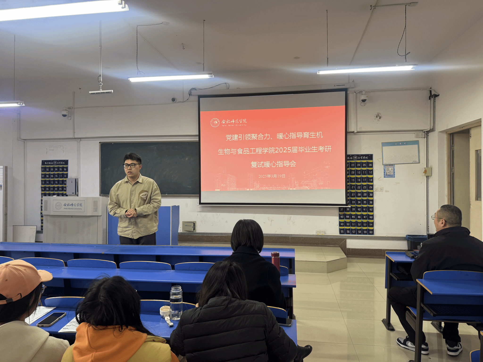 为帮助考研学子更好地备战复试,提升应试技巧与心理素质,3月19日,生物与食品工程学院在逸夫楼A206教室举办了“考研复试暖心指导会”。本次指导会邀请了学院教工党支部王占军、杨星星、朱玉三位党员教师,为即将参加复试的同学们提供了全方位的指导,会议由学生第二党支部书记、23级专职辅导员徐浩然老师主持。