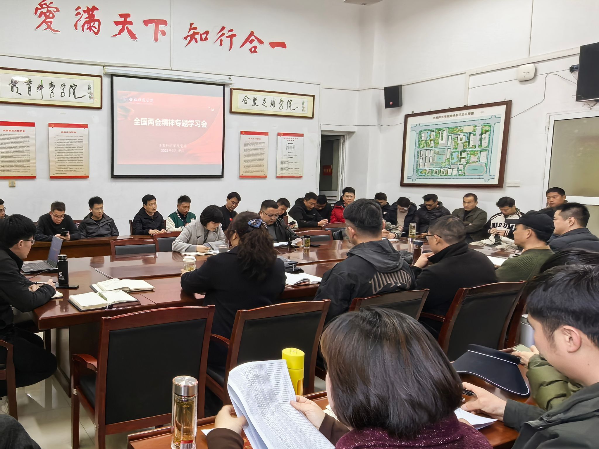 3月19日下午,体育科学学院党委在锦绣校区体育馆会议室召开全国两会精神专题学习会,深入学习贯彻2025年全国两会精神,结合学院学科特色与发展目标,部署推进新学期各项工作。学院领导班子成员、全体教职工参加。会议由学院党委书记胡石清主持。
