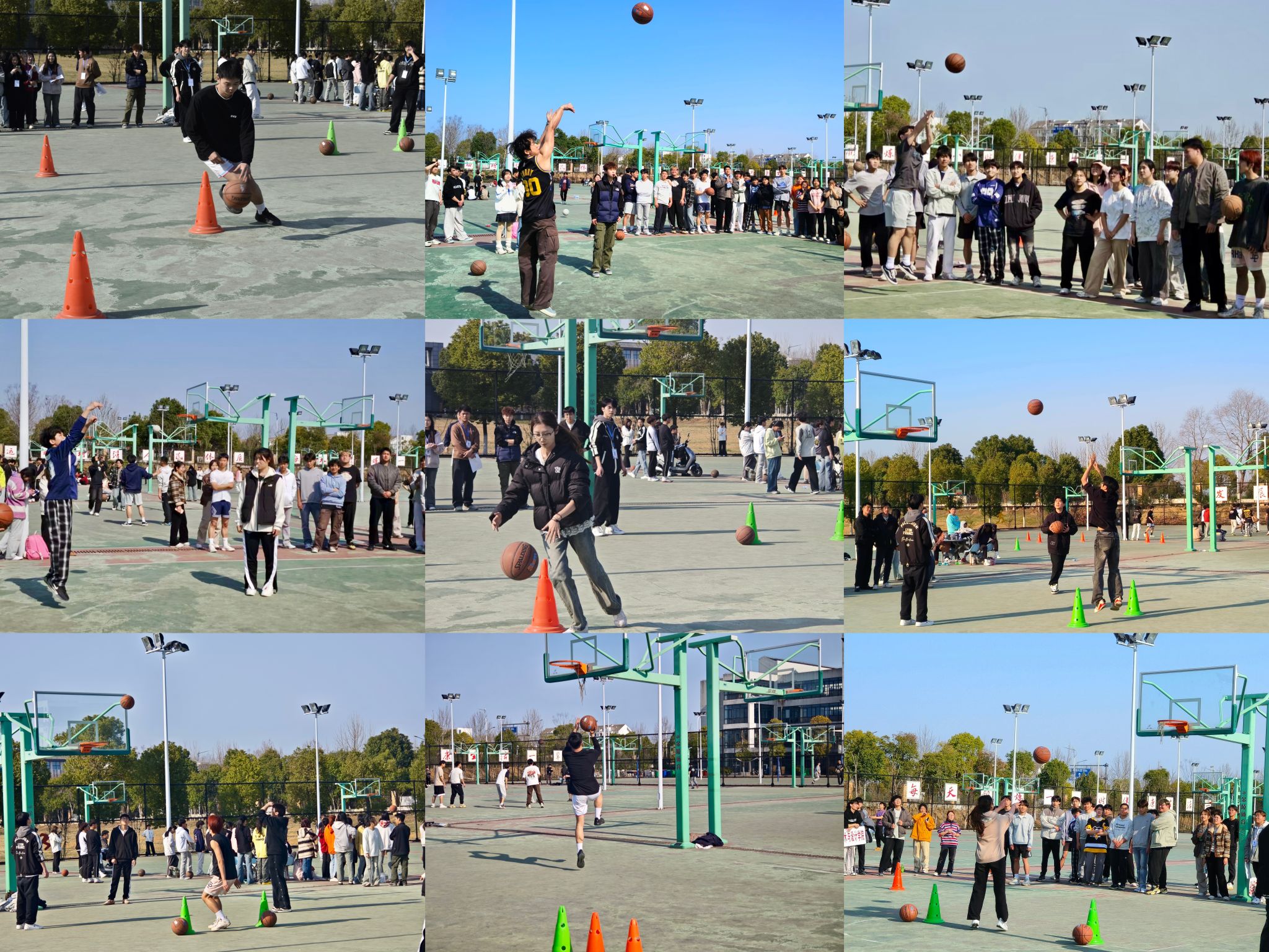 本次比赛,设置了“三分球大赛”与“技巧挑战赛”两大趣味项目,以学院为单位进行评比,经13个学院选拔推荐的65名男女生参加校赛角逐,充分兼顾了竞技性与趣味性。在团队三分球大赛中,每组5名选手需在5个投篮点依次投篮,男生和女生的“花球”分别有着不同分值设定,比赛紧张刺激,比分你追我赶。团队技巧挑战赛则考验团队默契与协作,选手们要依次完成运球绕桩、双手传球、运球上篮和运球中投等环节。赛场上,各队选手全力以赴,精彩瞬间不断,现场氛围热烈,场边观众的欢呼声此起彼伏,为选手们的精彩表现喝彩助威。