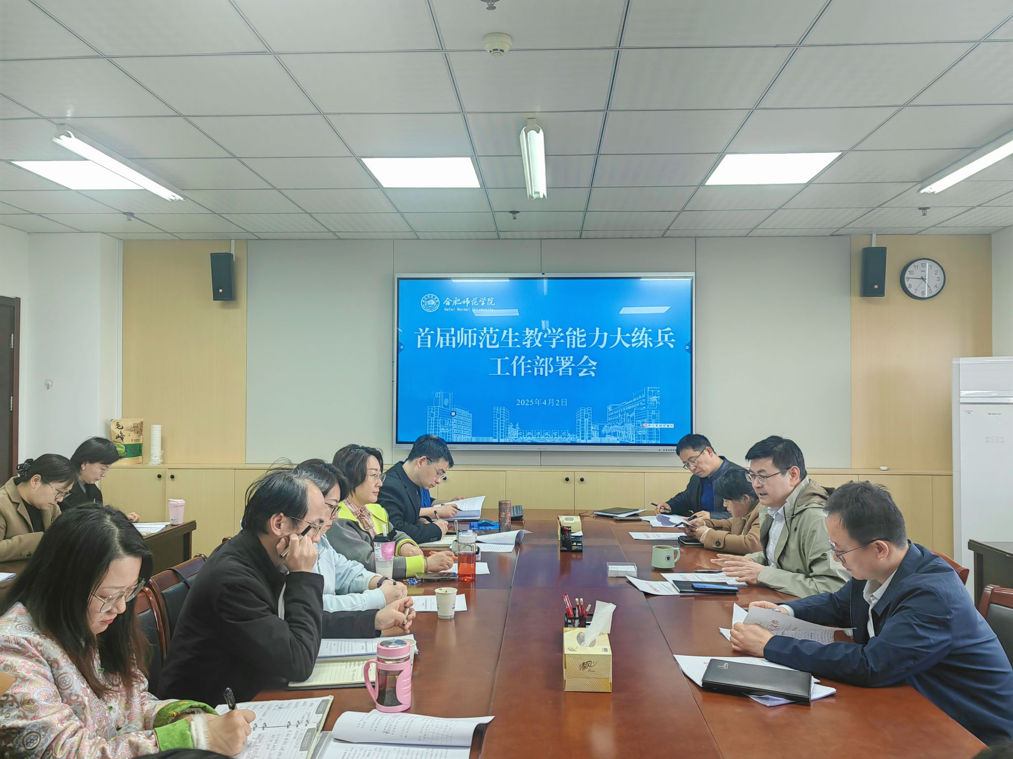 为持续夯实我校师范教育的根基特色,强化师范生教学技能和实践能力,增强师范生的核心竞争力,4月2日,学院召开专题会议部署举办首届师范生教学能力大练兵的相关工作。各师范专业所在二级学院的教学副院长、竞赛负责教师、教务处负责人及相关工作人员参加会议。