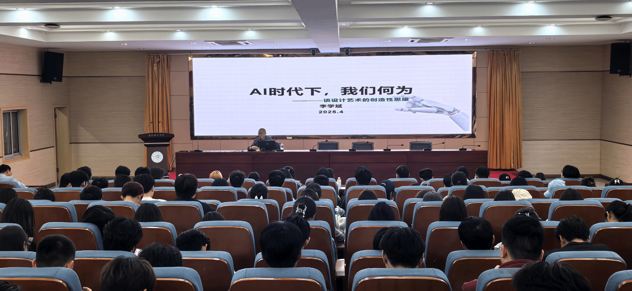 4月10日,美术与设计学院在锦绣校区学术报告厅开展主题为《AI时代下,我们何为——谈设计艺术的创造性思维》的学术讲座,由合肥工业大学建筑与艺术学院二级教授李学斌主讲。