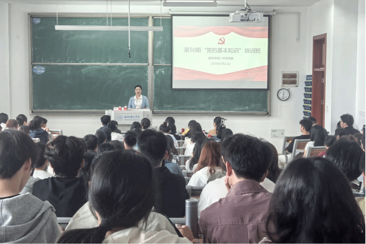 4月22日-4月23日,数学与统计学院分别在滨湖校区铭传楼B402教室、锦绣校区逸夫楼A109教室举行第50期“党的基本知识”培训班开班仪式,学院党委书记穆娟出席,班主任周丽娜和190名参训学员参加开班式。开班仪式由周丽娜主持。