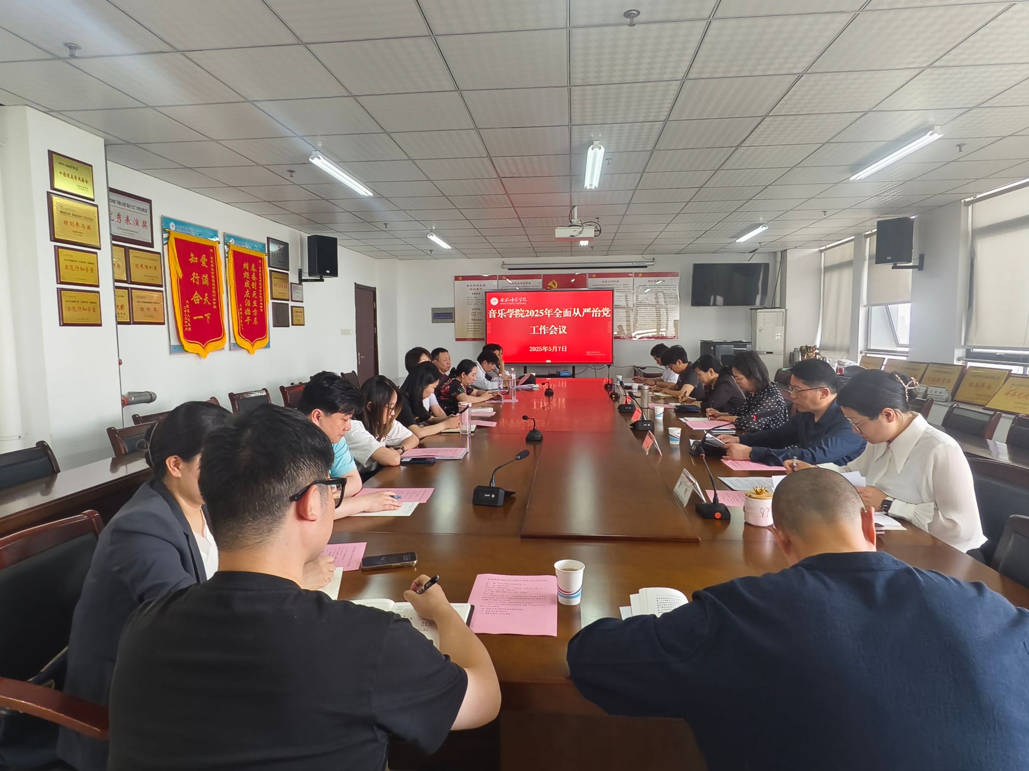 5月8日下午,音乐学院召开党委扩大会议,专题研究部署2025年全面从严治党工作。音乐学院党委全体成员、各党支部书记、系主任、中心主任、团委书记参加会议,校党委第一巡察组组长郑支农、副组长尚金梅列席会议。音乐学院学院党委副书记、院长李劲松主持会议。