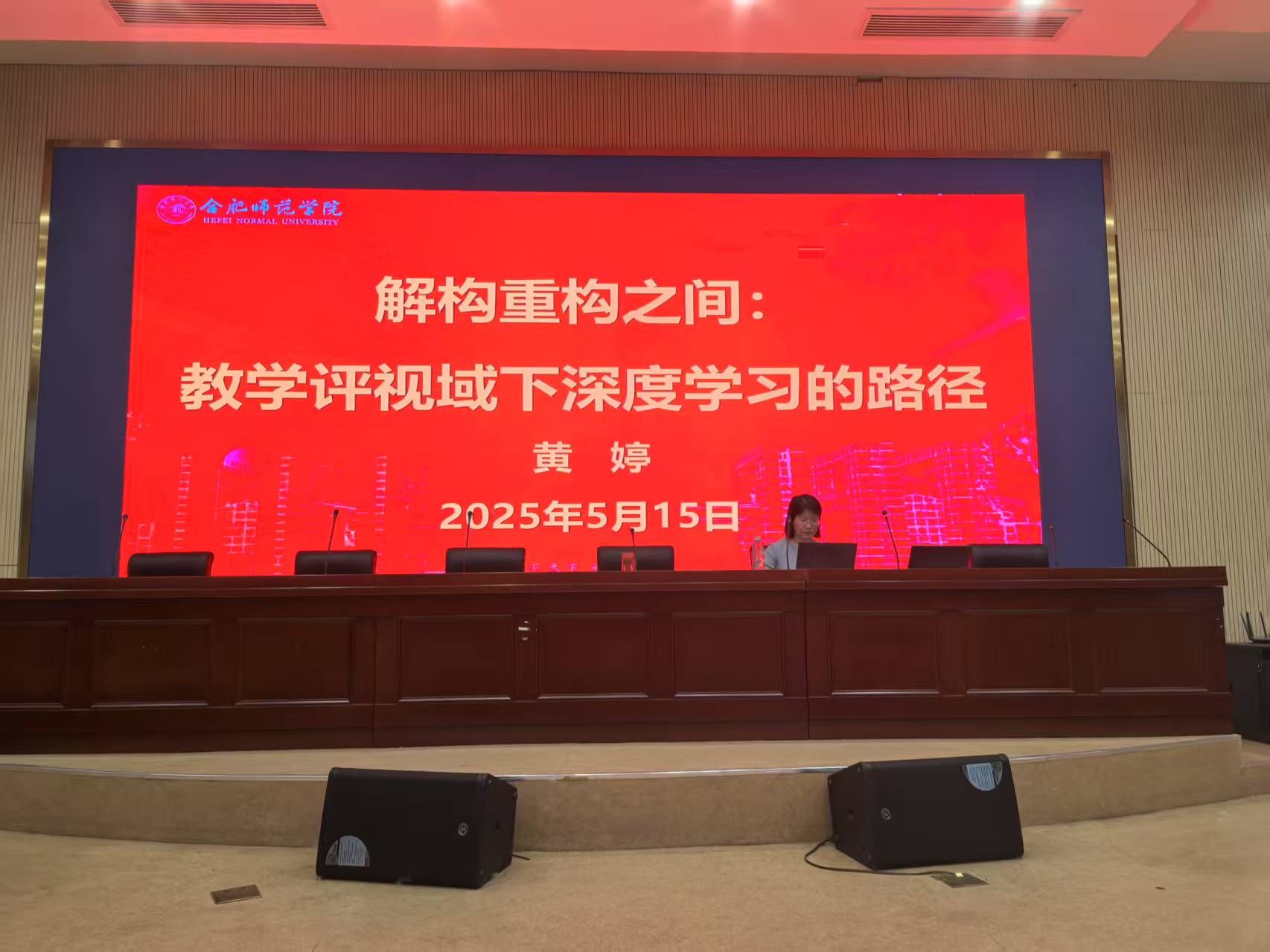 为引导思想政治教育专业师范生加强专业认同,了解当前我国中学思政课教学最新理念,树立训练教学能力的能动性,5月15日上午,合肥168中学名师黄婷老师应邀在滨湖校区学术报告厅做题为“解构重构之间:教学评视域下深度学习的路径”学术讲座。马克思主义学院2023级、2024级思想政治教育专业本科生160余人参加本次讲座,讲座由马克思主义学院副院长方政主持。