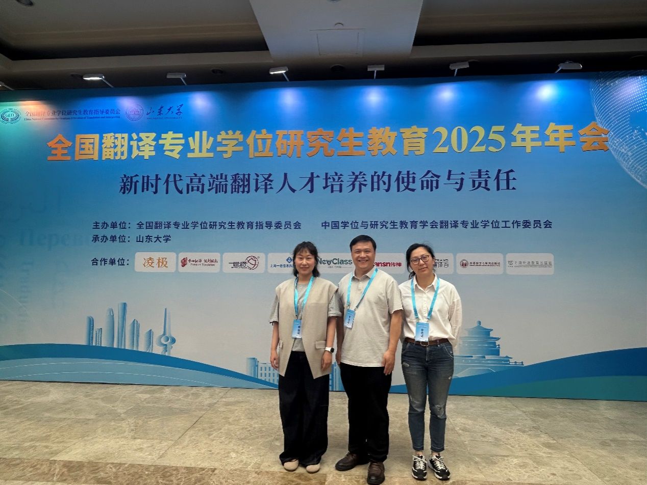 5月18日,全国翻译专业学位研究生教育2025年年会在山东济南举行,外国语学院翻译专业硕士点建设团队吴礼敬副院长和李政、周海鸿老师受邀参会。