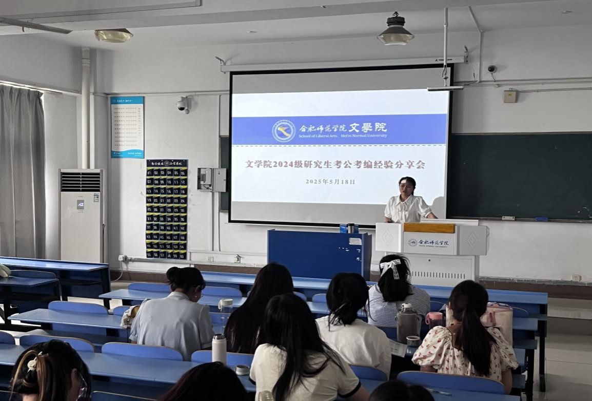 5月18日下午,文学院在逸夫楼403教室举办研究生专业成长与就业经验分享会,优秀硕士毕业生代表陈曦、董浩、鄢炜娟应邀担任主讲,为学弟学妹传授学业规划、技能竞赛及教师编制备考经验。近百名学子齐聚一堂,聆听“成长引路人”的宝贵经验,现场气氛热烈,掌声阵阵。