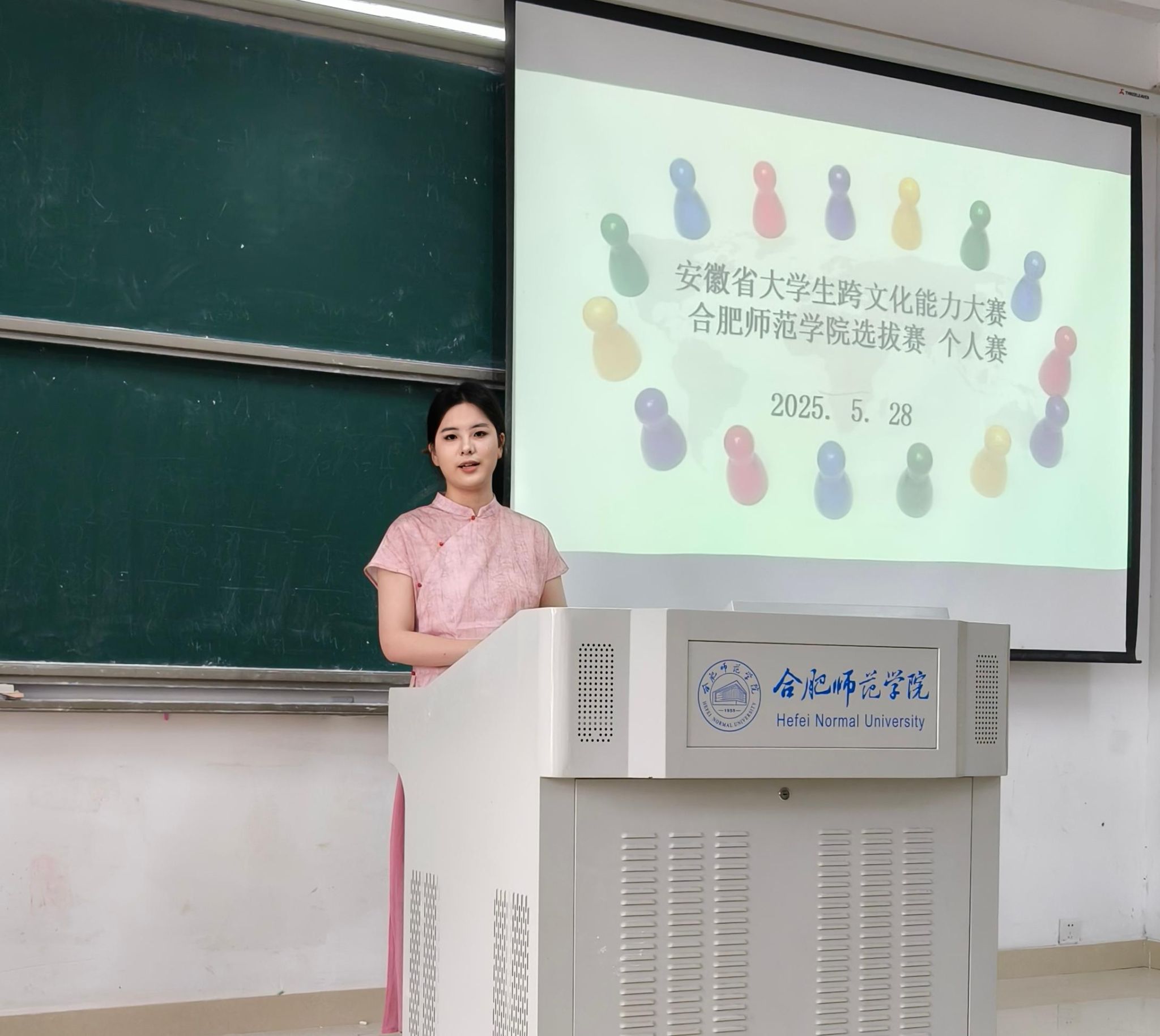 本次选拔赛得到全校不同院系、各个专业师生的积极响应和广泛参与。在英语组团体赛中,各组同学围绕“公共外交”和“商务沟通”“多元文化生活”等主题展开案例设计,将跨文化交际中的热点话题融合进团体展示环节,结合自身实际及专业视角,分析跨文化交际问题,提出跨文化交际策略。在英语组个人赛中,各位同学有序登场,生动讲述在徽风皖韵中孕育的中国故事,在黄梅戏曲的唱腔、天柱山风光旖旎的景致中传递好徽州文化声音。经过一下午的激烈角逐及评委老师的综合评定,团体赛由王俊婕团队、个人赛由来自思想政治教育师范专业的郭守芳同学拔得头筹。