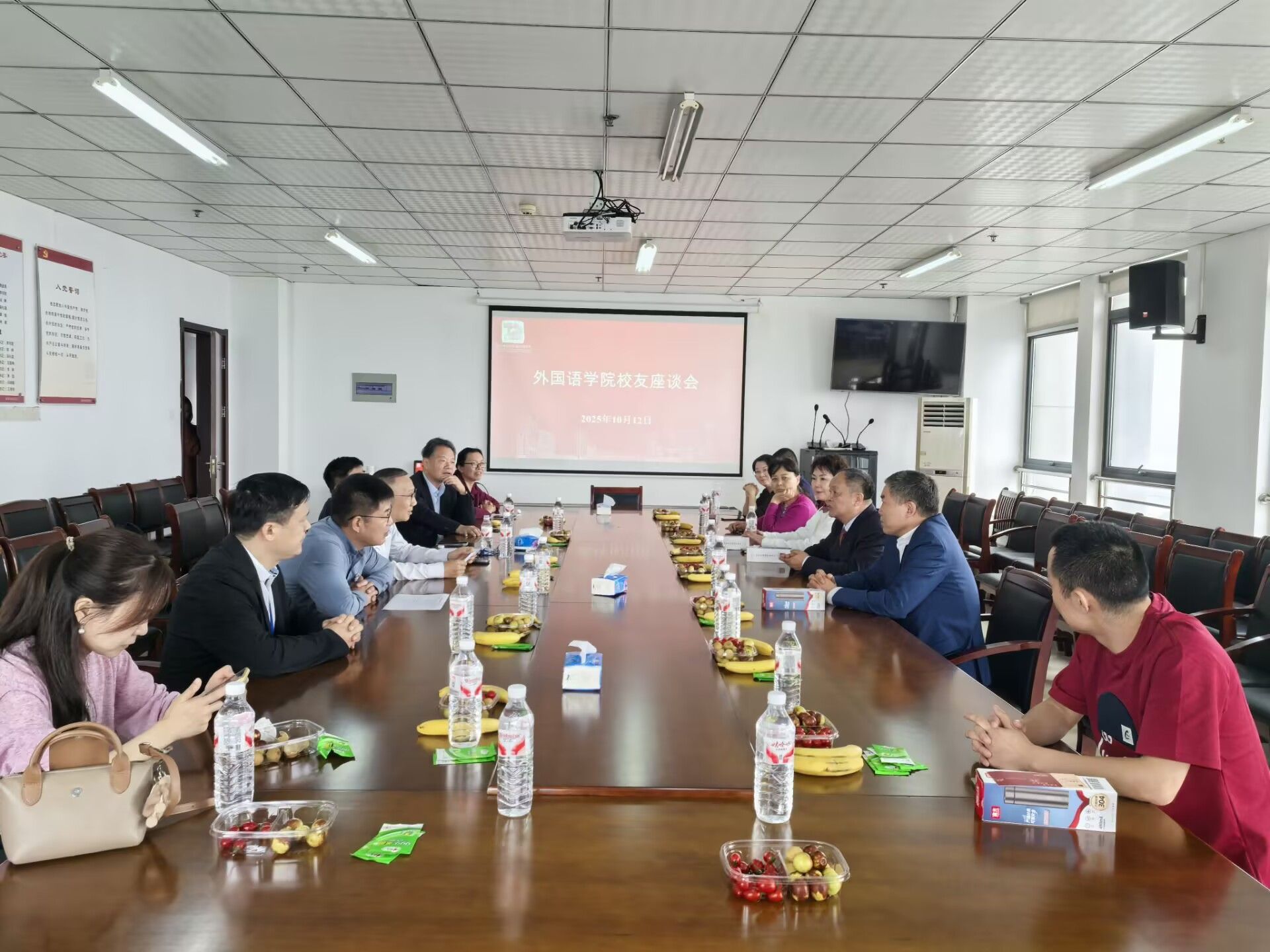 校庆期间,外国语学院专门组织了校友座谈会。会上,校友们深情回顾了在母校求学时的难忘经历,畅谈同窗之谊,感念恩师的谆谆教诲与辛勤培育。他们结合各自的工作领域和人生阅历,围绕“十五五”规划的新蓝图,就外国语学院未来的学科竞赛拓展、专业特色发展、创新人才培养以及校友联络机制优化等方面,提出了诸多宝贵的建设性意见,表达了助力母院发展的赤子之心。