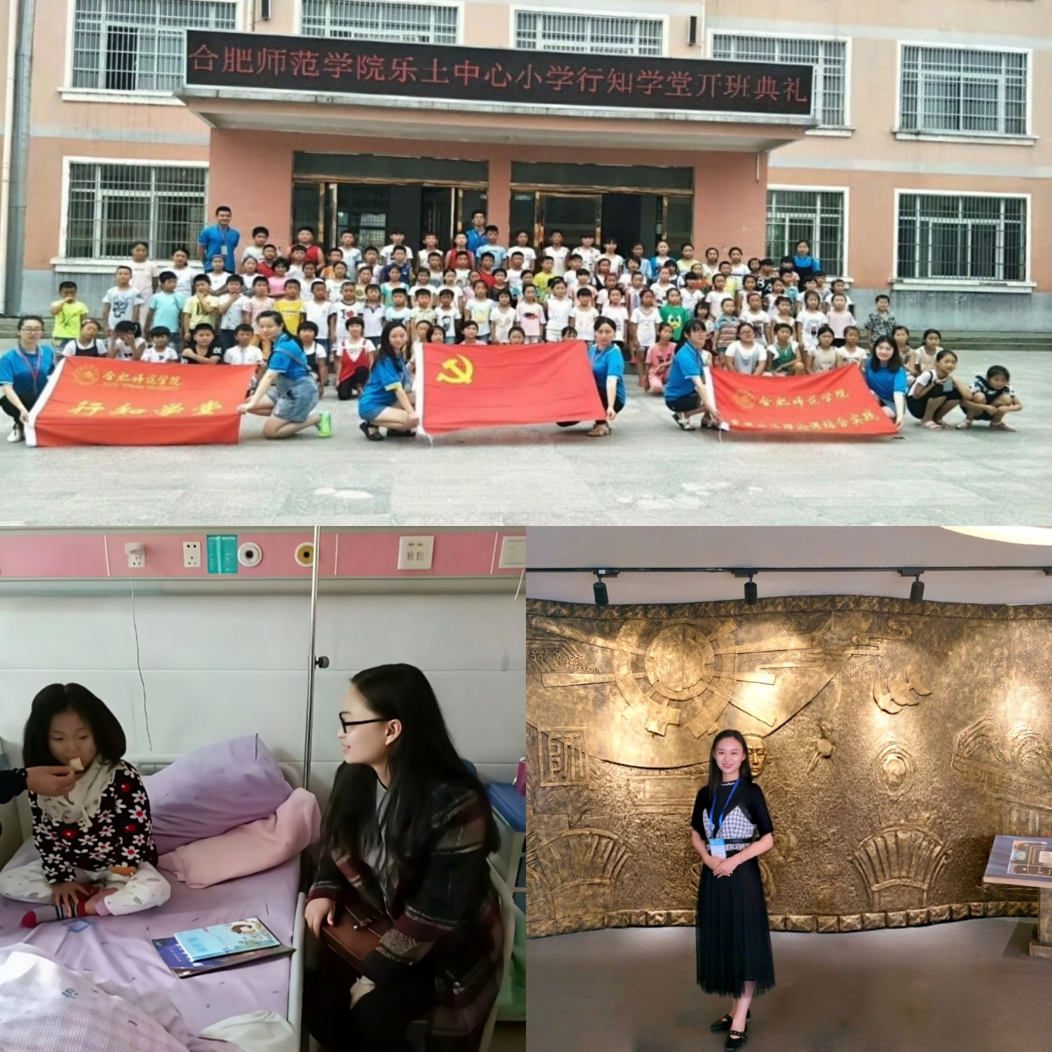 课余时间,我与学院学生会的小伙伴们组队到省立儿童医院开展志愿服务,看望慰问生病的孩子们,在消毒水的气味中为他们翻开精彩绘本的星空。大二暑期,我又带队组织不同学院的学子奔赴蒙城乐土中心小学开展“行知学堂”,学院老师们的实地慰问让我倍感温暖,当地电台的报道也让我倍感荣耀。