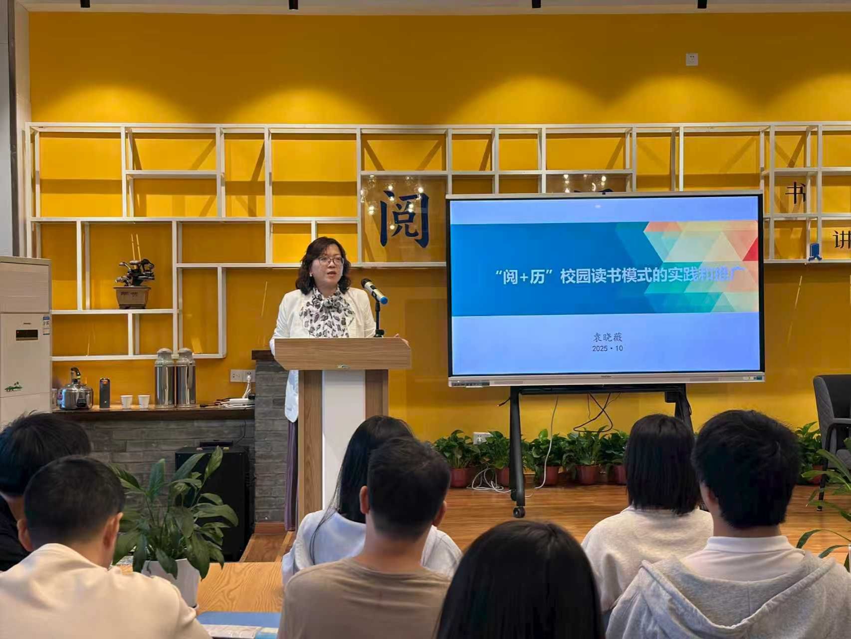 10月15日,2025-2026学年上学期线下精品通识选修课综合素养类“阅+历”读书讲堂系列讲座正式开讲。在锦绣校区图书馆,“人文十讲”第一讲由安徽省教学名师、文学院袁晓薇教授作主题为“‘阅+历’校园读书模式的实践和推广”分享。本次讲座由图书馆馆长方孝玲主持。