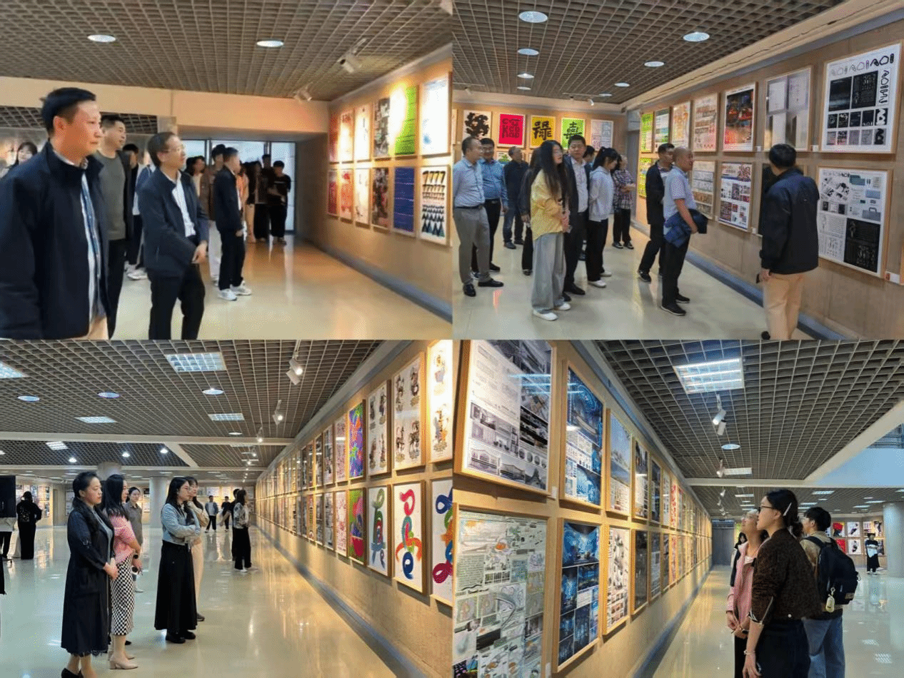 导览过程中,师生们跟随党员教师的导览,凝神驻足观摩每一件作品,从构思精巧的视觉海报到充满智慧的产品设计,从蕴含文化叙事的服饰作品到科技感十足的数字媒体艺术,沉浸式领略艺术设计的魅力。师生们围绕设计服务生活、艺术呼应时代等话题积极互动,现场气氛活跃融洽。在环境设计作品版块,观展师生聚焦民宿、景观、展馆及办公空间等人居环境作品,通过空间语言感受功能布局与人文思想的交融;在产品设计作品版块,人性化功能与美学表达的设计作品让观展师生体会到设计如何提升实用价值与情感体验;在服装与服饰设计作品版块,师生们纷纷驻足感知作品对徽文化与传统图案的现代转译,以及作品蕴含的文化传承与时尚张力;在视觉传达设计版块,师生们观摩以安徽地方文化为核心的文创、书籍及品牌设计,感悟地域文化的视觉特征与精神内涵。一幅幅作品以设计为媒介成为美育浸润的生动载体。