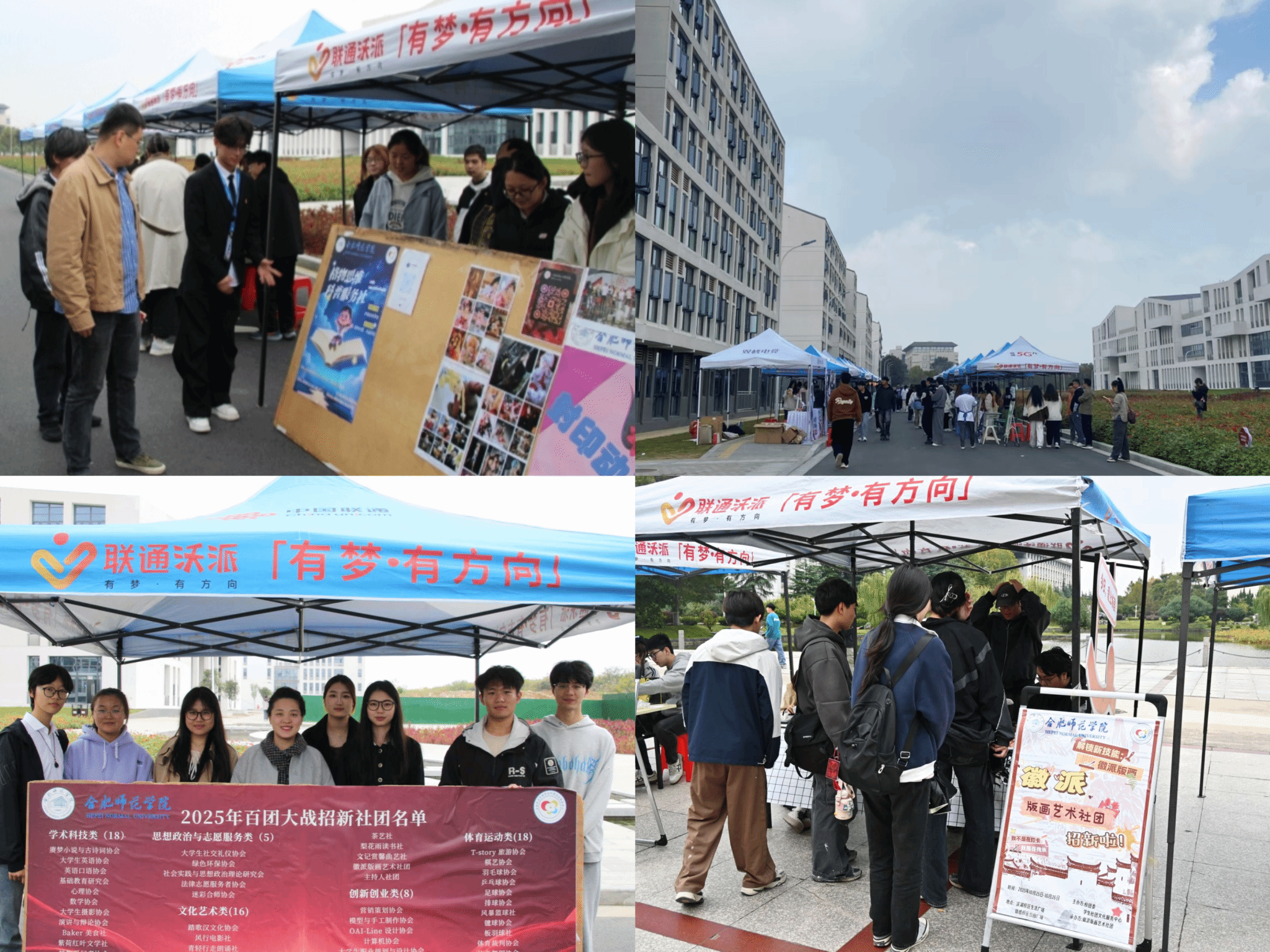 秋阳正好,青春跃动。10月25日至10月26日,学院在滨湖校区、锦绣校区同步开启2025年“百团大战”社团招新活动,院团委全体人员为招新工作提供指导。本次社团招新活动共有5000余人次参与。65个涵盖学术科技、思想政治与志愿服务、文化艺术、创新创业、体育运动类别的学生社团集结亮相,以多元活动与特色展演,为新生们打开校园的“隐藏开关”。